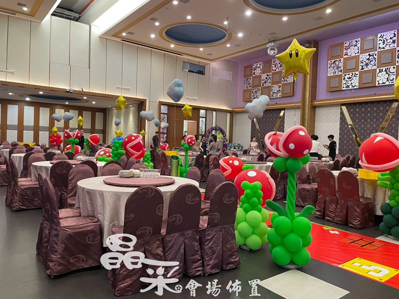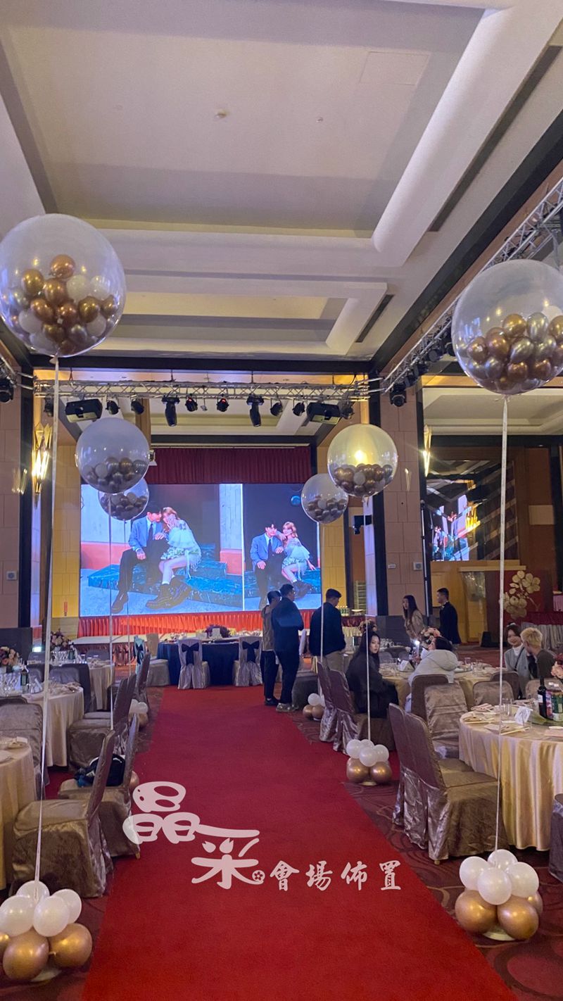 *嘉義晶采婚禮會場佈置 *客製化背板 * 花燈柱子 *氣球柱 *紅地毯 *氣球拱門